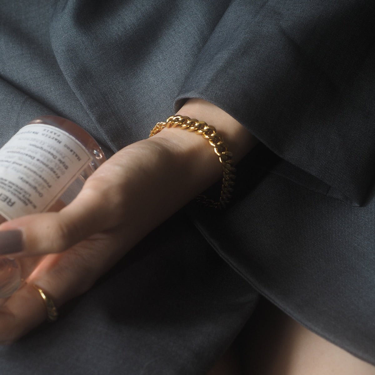 Wrap your wrist in the luxury of our Brie Intricate Link Bracelet. Crafted in a gold plated stainless steel featuring an adjustable chain with a lobster clasp closure.