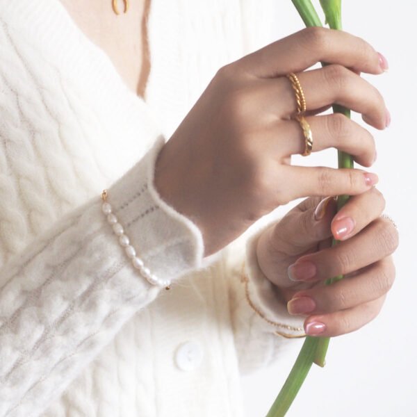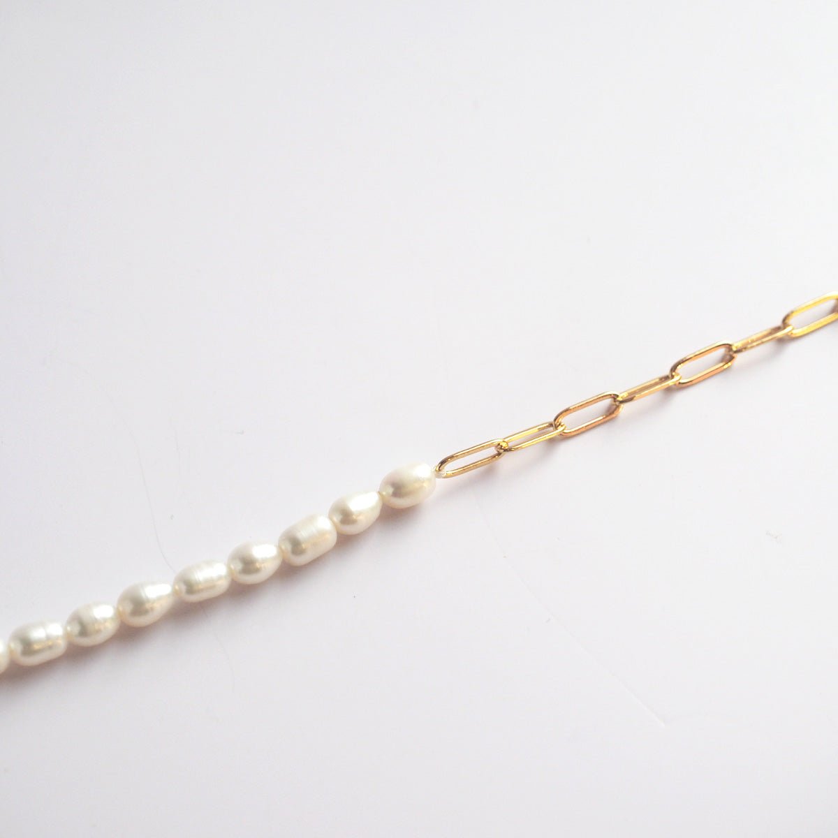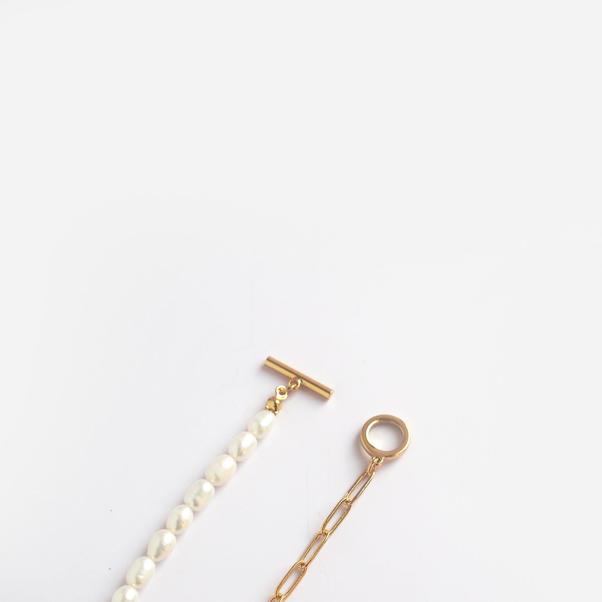 Securing with a T-bar fastening. our?Pearls T-bar Gold Tone Bracelet?features?a combination of a?gold?chic clip chain?and?dainty?pearls.?Wear?it?solo?or?stack?yours with other?pieces?from our?collection.?Team it up with our?PEARLS T-BAR GOLD TONE NECKLACE for a more elegant look.
